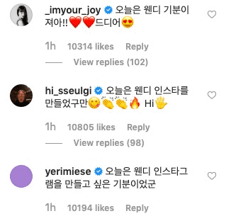 Diğer Red Velvet üyeleri samimi yorumlarla birçok hayranın yüreklerini ısıttı.