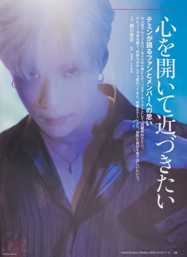 Taemin: Birçok hayran geldiği için daima minnettarım. Işıklı çubuklar da gerçekten çok güzel ve hayranlar ile birlikte şarkı söylemek etkileyici. SHINee ile birlikteyken, dans etmek için elimden gelenin en iyisini yapardım. Bunun benim görevim olduğunu düşünürdüm. Sahnede, (üyeler) Key ve Minho hyung hayranlarla konuşurlardı ama ben bunun farkında değildim. Elimden gelenin en iyisini yapmaya çalıştığım zamanlar oldu, ama şimdi hayranlarla etkileşime geçmenin gerçekten önemli olduğunu düşünüyorum. Sanırım, bu açıdan değiştim. Öte yandan üyeler muhteşem. Daha önce, ”Shabekuri adlı televizyon programında yalnızdım, varyetelerde (dönen muhabbete) hemen tepki vermek önemli değil mi? Fakat ben bunda iyi değilim. Bir şeylerden ilgi çekecek şekilde bahsedebilme yeteneğim yok… Key hyung’un bu konuda daha iyi olacağını düşündüm (gülüyor). Endişeleniyorum ama bunu kendi başıma yapmak istiyorum.