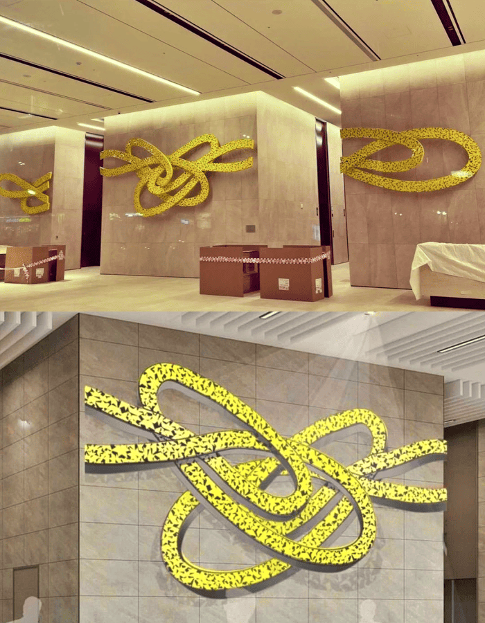 Binayla ilgili yeni bir detay, yakın zamanda halka sunuldu ve bu detayın, neredeyse şirketin idolleri kadar çekici olduğu görüldü: Resepsiyon lobisinde yer alan ve üç duvarı kaplayacak kadar büyük olan bir heykel.
