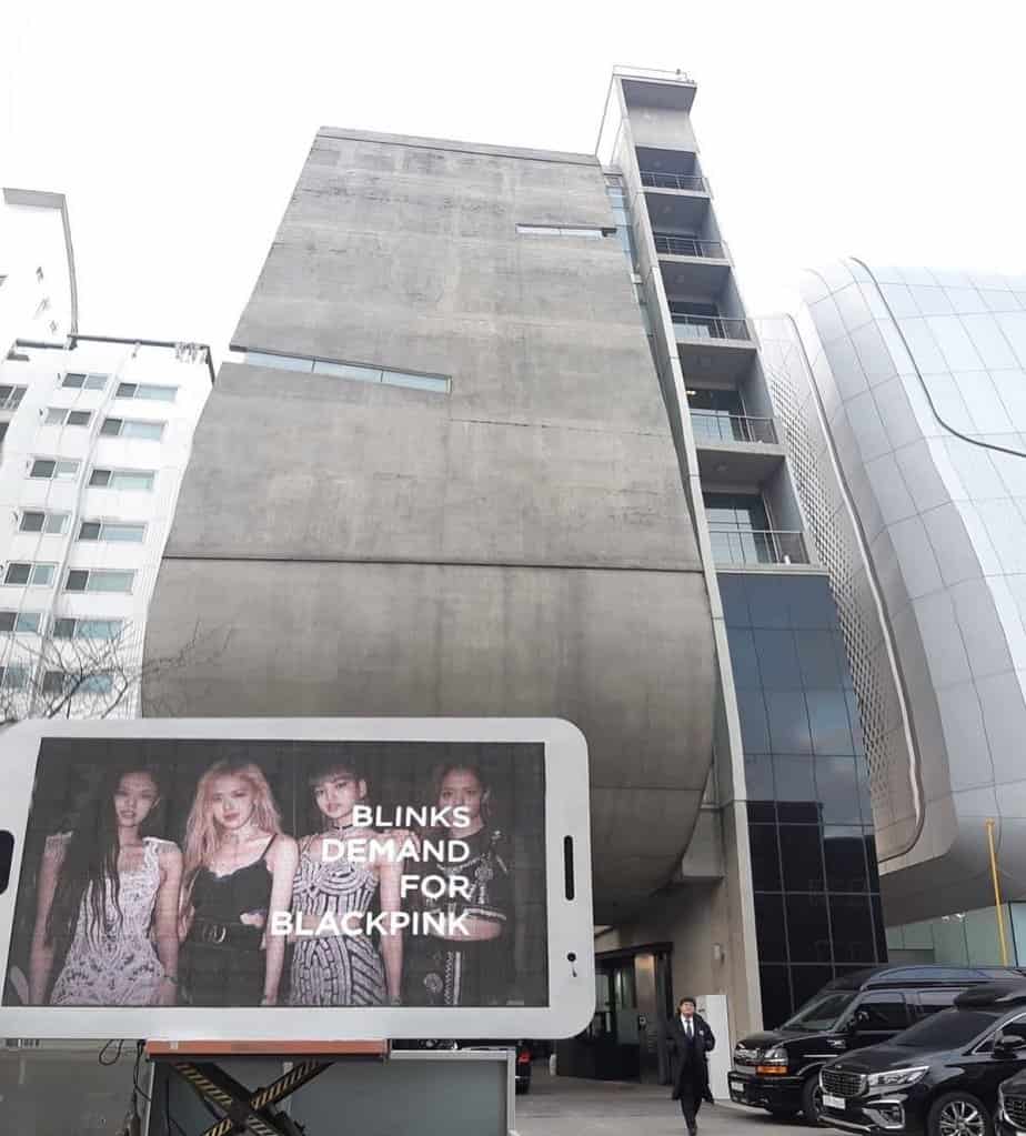 BLACKPINK fanları, BLACKPINK’in daha iyi muamele görmesi için YG’nin binasının dışında bir video ekranı kurdular.