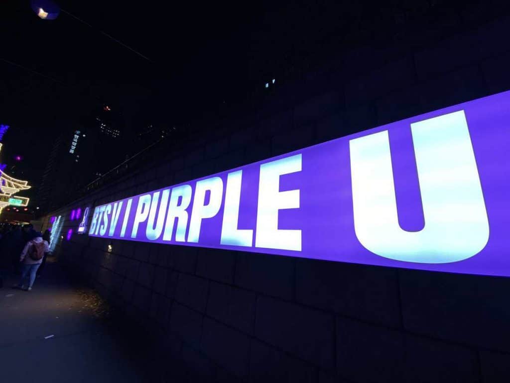 V, 30 Aralık’ta 24 yaşına (Kore yaşına göre 25) girecek ve şarkıcının Çinli hayran klübü, bu özel günün onuruna Seul’un bir kısmını mor ışıklarla aydınlattı. V, BTS’in “3. Muster” hayran buluşması sırasında mor rengini, “güven ve sevgi”yi tarif edecek şekilde yeniden tanımladı ve o günden bu yana “purple” (mor) BTS ve ARMY için özel bir anlama büründü.