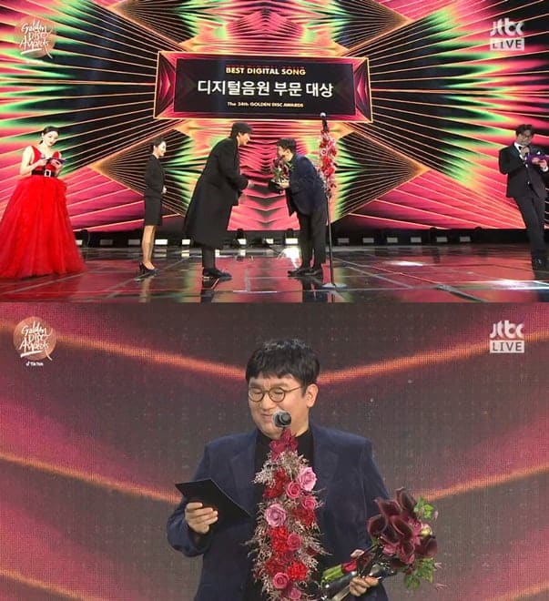 Bang PD's acceptance speech for 34th Golden Disc Award's Best Producer Award!!@hitmanb @BigHitEnt#BestProducer_BangSiHyuk #GoldenDiscAwards pic.twitter.com/U2NtRoR7dV