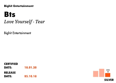 Grubun, “Fake Love” başlık şarkısıyla yayımlanan 3. full albümü “Love Yourself: Tear”, 18 Mayıs 2018’de piyasaya sürüldü. Albüm 10 Ocak’ta, BRIT gümüş sertifika almaya hak kazandı.