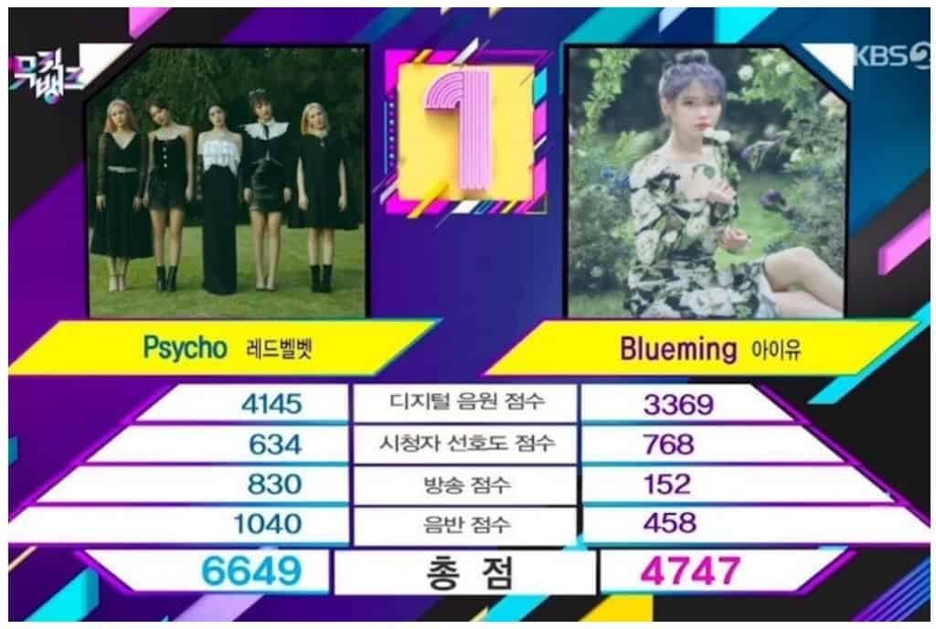10 Ocak “Music Bank” bölümünde, birincilik için Red Velvet’in “Psycho” ve IU’nun “Blueming”i aday oldu. Red Velvet, IU’nun 4.747’sine karşı toplam 6.649 puanla kazandı.