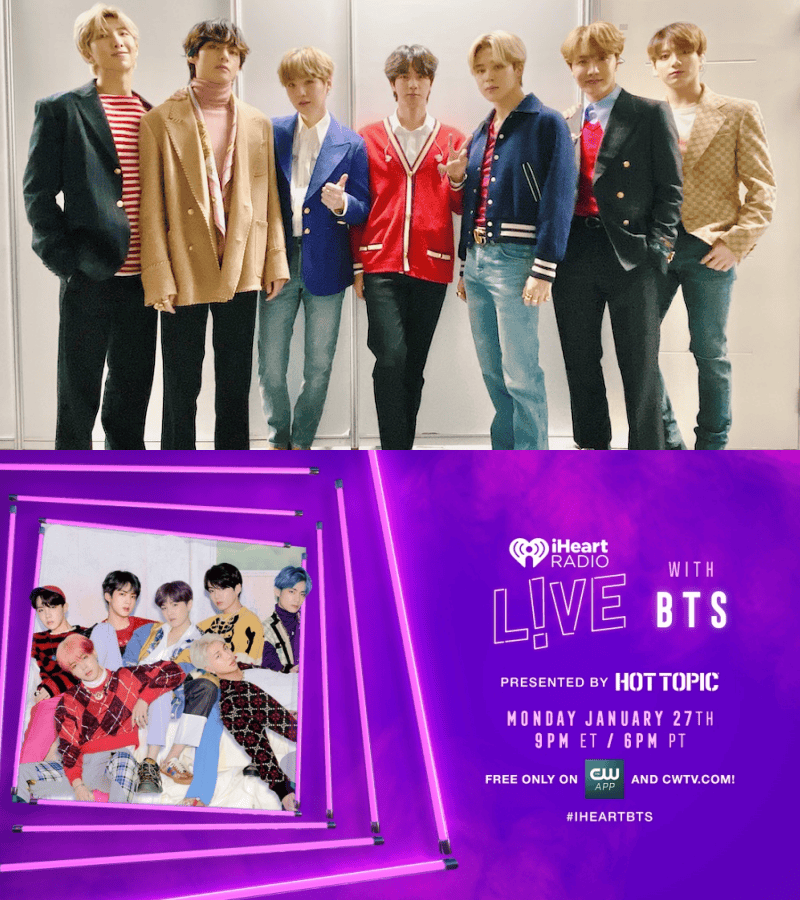 Grup, “iHeartRadio LIVE with BTS presented by HOT TOPIC” başlığıyla 27 Ocak tarihinde iHeartRadio Theater‘da düzenlenecek etkinlikte performans sergileyecek. Doğu ABD saatiyle 21.00’de (Türkiye saatiyle 28 Ocak sabah 05.00) başlayacak olan etkinlik canlı olarak yayımlanacak.