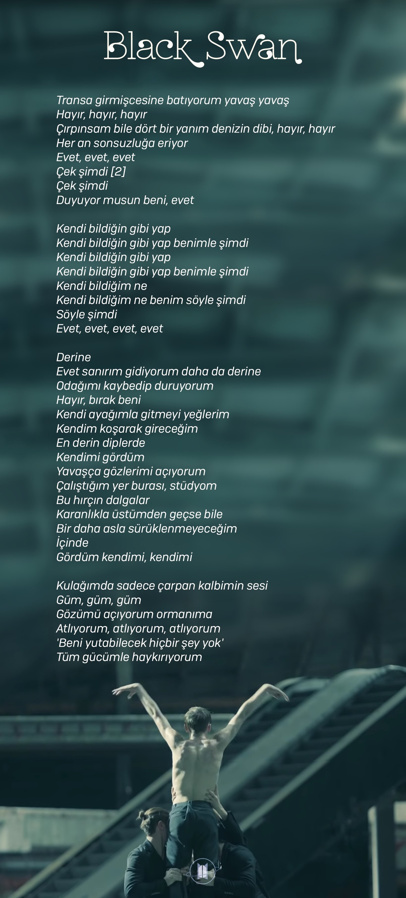 Lumpens tarafından çekilen klip ve RM tarafından ortaklaşa yazılan “Black Swan”, Amerikalı dansçı Martha Graham‘ın alıntılarından esinlenerek oluşturuldu. Şarkı, bir sanatçının artık sahnede dans edemeyeceği o anın korkusunu ifade ediyor.