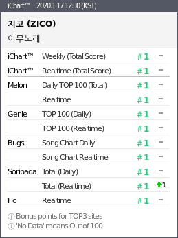 지코 (ZICO) – 아무노래 pic.twitter.com/7KK6oJSi8h— iChart™ (@instiz_ichart) January 17, 2020