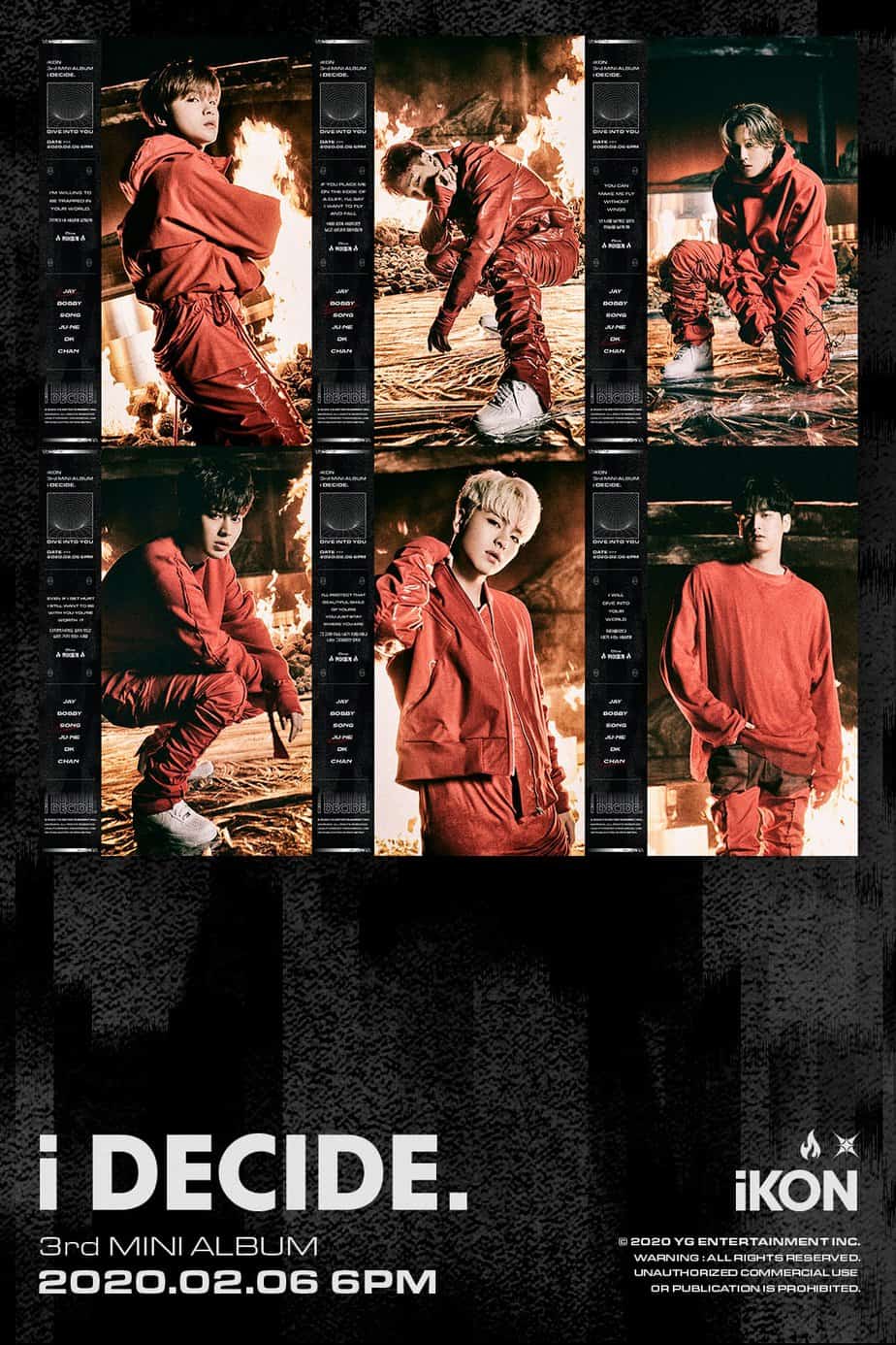 iKON 1 yıl aradan sonra beklenen geri dönüşünün başlık parçası “Dive” (E/N: dalmak anlamına geliyor) için kırmızı kıyafetler ile bir teaser paylaştı. Teaser’da her bir üye kartının yanında şarkının çarpıcı ve duygusal sözlerinden kısımlar var.