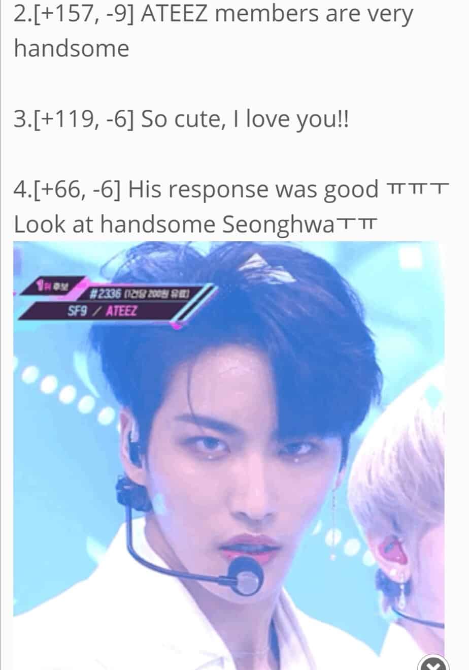 6.[+47, -3]Bizim ATEEZ’i gördüğüme sevindimㅠㅠ Gerçekten tatlı ve yakışıklılar