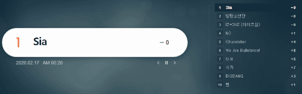 Ve Melon gerçek zamalı aramalarda son durum: #1 SIA, #BTS, #4 NO, #6 We Are Bulletproof, #7 ON