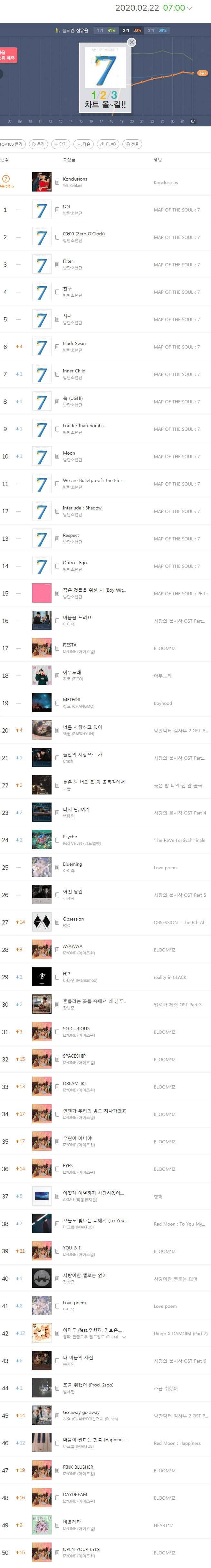 İlk 50’de, 28 BTS ve IZ*ONE şarkısı var.