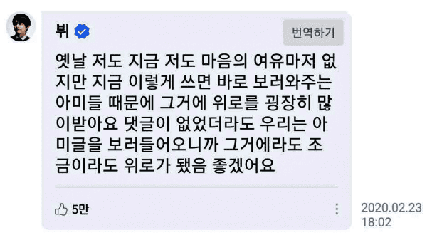V‘nin mesajı sonrası ARMY de kendisine cevap yazdı ve ona rahatlatıcı ve samimi sözleri için teşekkür etti. BTS‘den de ne kadar güç ve destek aldığını anlatark, o da V‘yi teselli etmeye çalıştı.