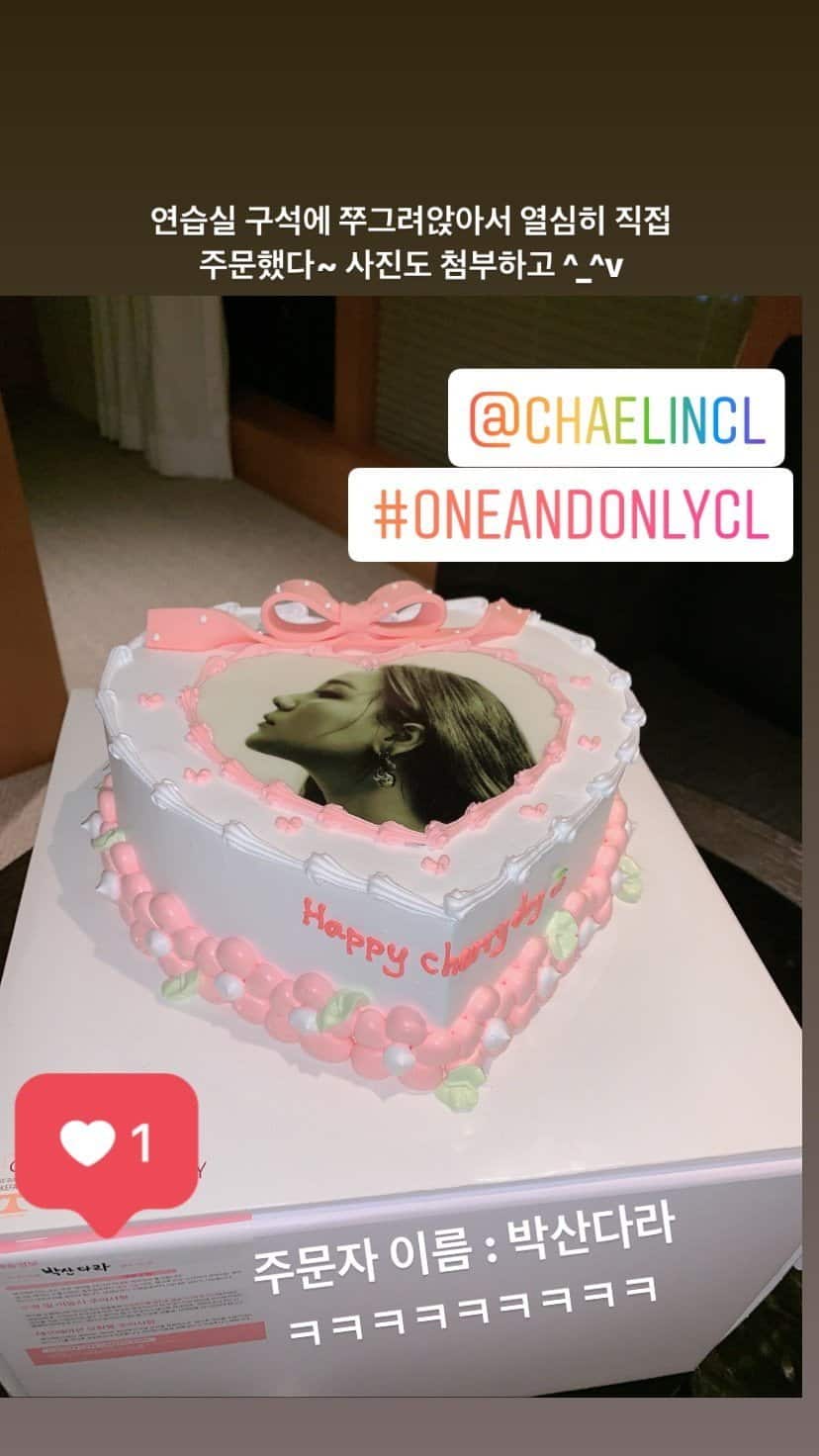 Dara ayrıca Instagram hikayesinde yazarak, CL için pasta siparişi verdiğini, “Pratik odasının zeminine çömelirken siparişi verdim. Bir fotoğraf da ekledim. Sipariş veren : Sandara Park.”