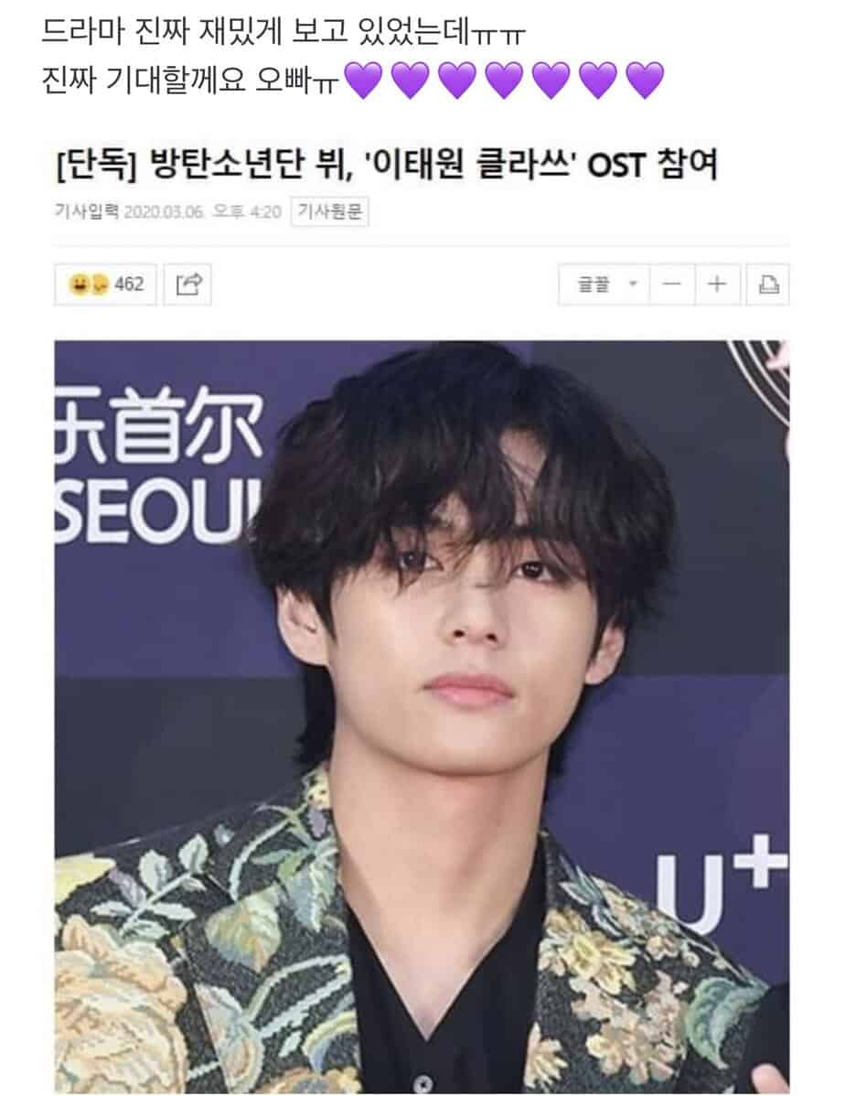 V, daha önce ocak ayında drama için OST söyleme arzusunu dile getirmişti. Weverse uygulamasında, “Itaewon Class” OST’sini seslendireceğine dair çıkan haberleri paylaşan bir hayranına yanıt vererek, bu haberi doğruladı.