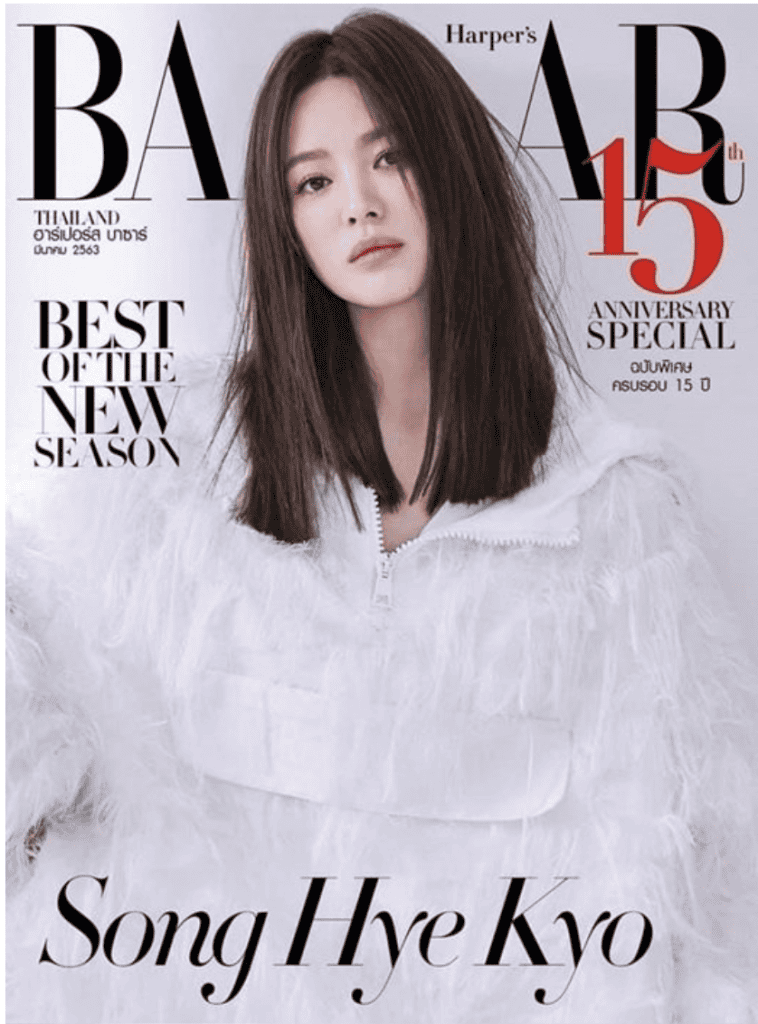 Song Hye Kyo, ilk çıkışından bu yana geçen 15 yılını kutluyor ve bunun için moda dergisinde yer aldı. Aktris, stilden sonra tarzını göstermek için, zarif ve farklı pozlama tarzlarındaki yeteneğini sergiledi. Bebek benzeri özellikleri, siyah beyaz çekiminde daha da fazla vurgulandı.