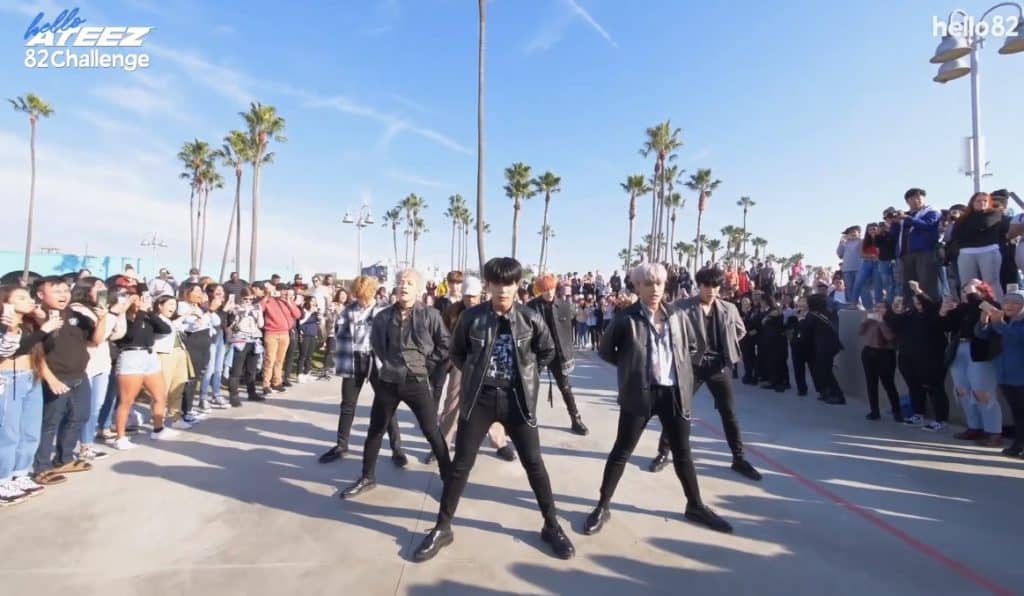 ’82Challenge’da, çaylak K-Pop erkek grubu ATEEZ, kendi hayranlarıyla beraber ’82Challenge’ personelinin verdiği tuhaf görevleri üstleniyor. Birbirinden tuhaf görevlerden ilki, dans cover videosu çeken hayranlara sürpriz yaparak onlarla beraber dans etmekti. Diğer grup üyelerinden önce San yaşlı adam kılığına girerek hayranların arasına karıştı. Sonrasında ise diğer üyeler de alana girerek tüm herkesi şaşırttı: