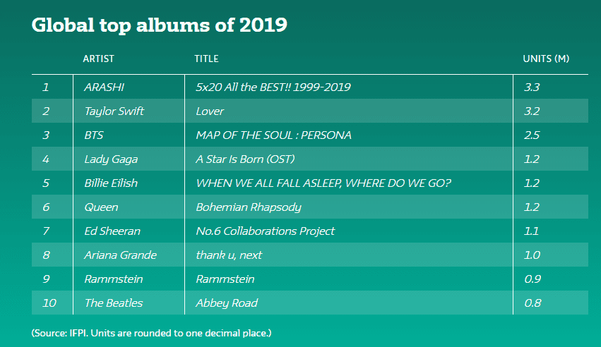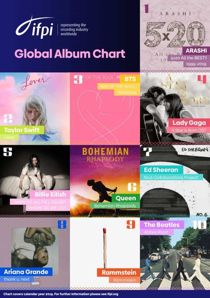 19 Mart’ta, Uluslararası Fonografik Endüstrisi Federasyonu (IFPI), 2019 için Global Albüm Listesi’ni açıkladı.