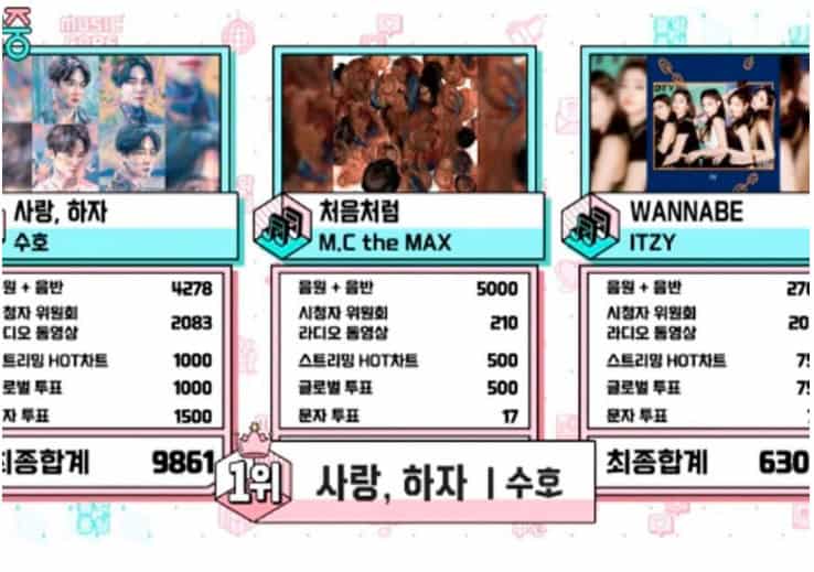 MBC’deki “Music Core” un 11 Nisan bölümünde EXO’dan Suho’nun “Let’s Love” şarkısına karşı MC Max’in “Bloom” ve ITZY’nin “WANNABE” şarkıları vardı. MC Max 6.227 puanla üçüncü, ITZY ise 6.300 puanla ikinci oldu.