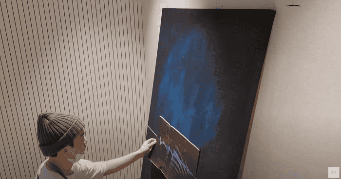 “Yoongi, ses dalgası formlarını resmine eklemek için, “sabah” hakkındaki düşüncelerinin çıktısını aldı. Ses dalgası sanatının bu şekli çok yaratıcı… O, gerçekten sanatsal bir deha.”