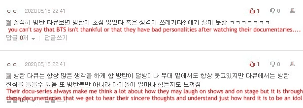 “Belgesel serileri daima, zorluk yaşamalarına rağmen programlarda ve sahnelerde nasıl da gülebildiklerini çok fazla düşünmeme neden oluyor. Samimi düşüncelerini duyabildiğimiz bu belgeseller, bir idol olmanın ne kadar zor olduğunu anlamamı sağlıyor.”