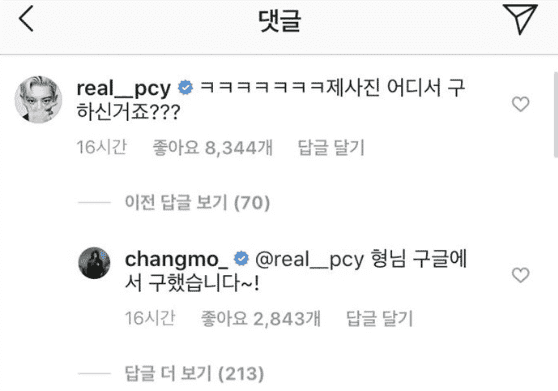 Changmo gönderiyi paylaştıktan kısa bir süre sonra Chanyeol, “LOL bu fotoğrafımı nerede buldun?” yorumunu yaptı. Changmo, Chanyeol’a “Google’dan buldum hyung” diye yanıtladı.