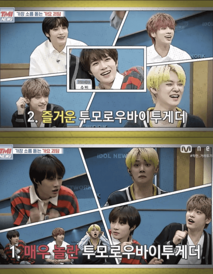 “Bu konuda iyi olan kim?” sorusuna ise, Yeonjun ve Beomgyu el kaldırdı. Korku filmi fanatikleri oldukları için, Yeonjun ve Beomgyu‘ya, izledikleri en korkunç filmler soruldu. Yeonjun, “Aslında ‘The Mimic’i (2017 yapımı) izlerken gerçekten korktum. Beklenmedik derecede korkutucuydu. Sadece bir gerilim filmi olduğunu duymuştum. Bu nedenle rahatça izleyeceğimi düşünmüştüm, ancak birçok kez yerimden sıçramamla son buldu.” dedi.