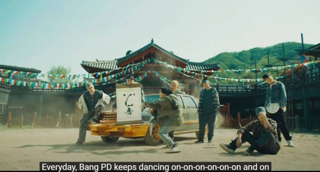 Jin, Agust D‘ye bakmak için döndüğünde, elindeki çubuk Jungkook‘un kafasına dokunur ve ikisi de tıpkı gerçek hayatta oyun oynadıklarında olduğu gibi hemen kavgaya başlar.