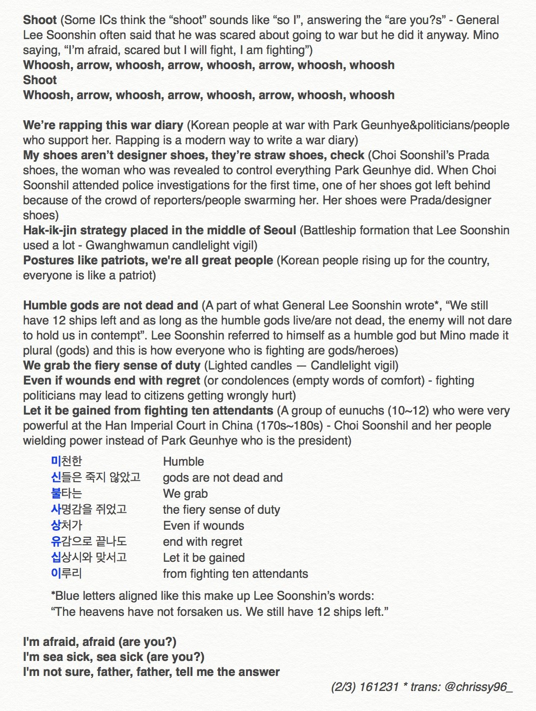 ‘Agree’ parçası, daha önce 2018’de imajını mahvetmeye çalışan Dispatch’te doğrudan bir diss. Mino, Miller Rodriguez adlı bir fotoğrafçının Instagram hesabını takip ettiği için saldırıya uğramıştı. Fotoğrafçının hesabının pedofili ve pornografi içerdiği söylendi. Bu hesap ve Mino’nun onu takip etmesi, Dispatch tarafından afişe edildi, Dispatch’in Mino’nun imajını mahvetme girişimleri hayranlarda da öfkeye sebep olmuştu.