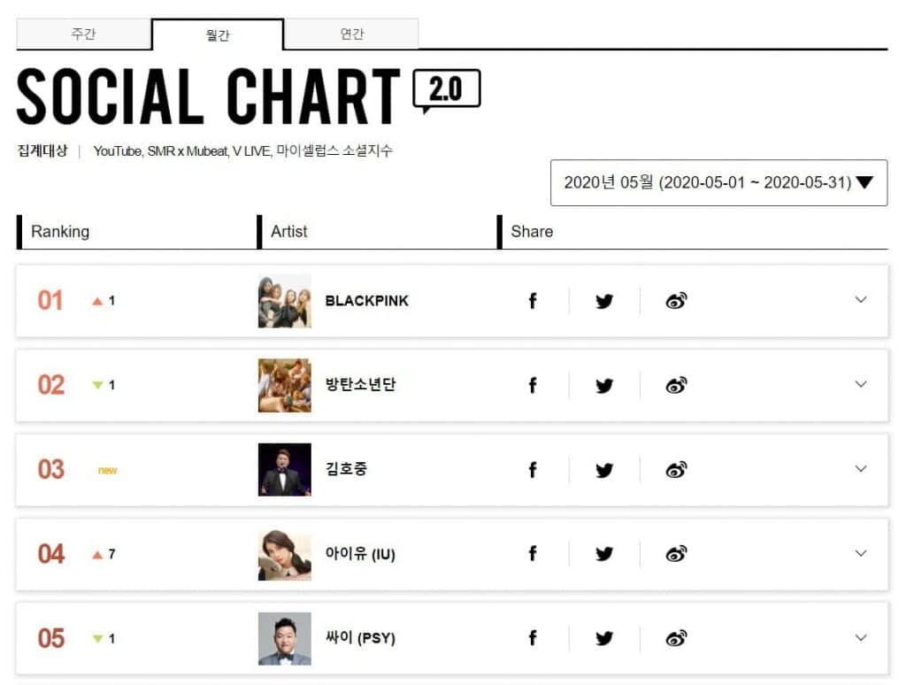 Gaon Ulusal Aylık Fiziksel Albüm Sıralaması