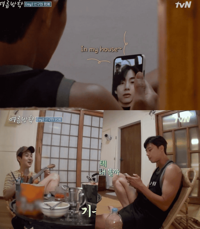 Üçlü akşam birlikte takılırken, Park Seo Joon, V ile görüntülü görüşme başlattı ve ona, nerede olduğunu sordu.