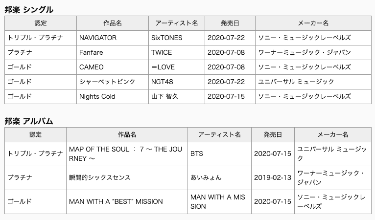 RIAJ’ın Temmuz ayı sertifika listesinde, BTS’in “MAP OF THE SOUL : 7 ~ THE JOURNEY ~” albümünün, üçlü platin statüsüne ulaştığı ortaya çıktı.
