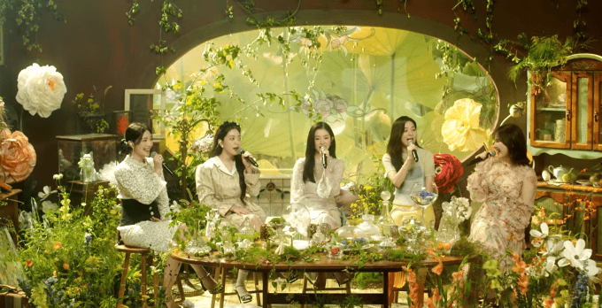 Red Velvet üyeleri, Wendy’ye bakarak şarkı söylüyor.