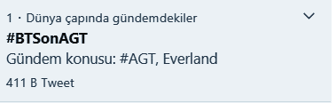 BTS‘in “America’s Got Talent”ta performans sergilemesinin hemen ardından, #BTSonAGT tagi dünya gündeminde 1 numara oldu.
