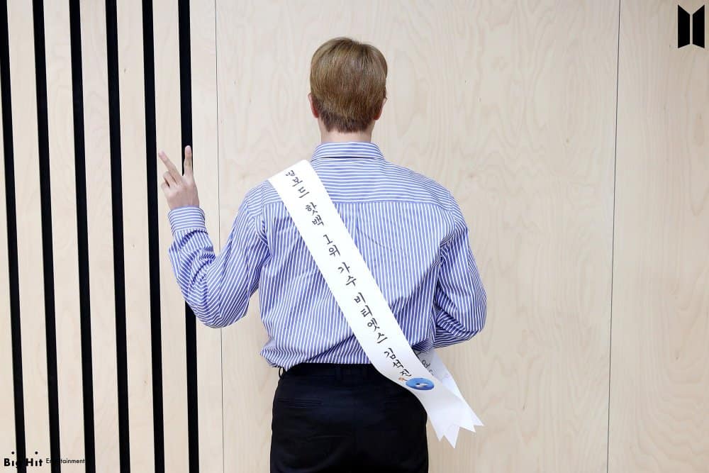 Ah! Bu kuşak, Jin’in geniş omuzlarının üstesinden gelemediği için mi düştü? Yoksa… yakışıklılığından şaşkına döndüğü için mi? Hey kuşak, şanslısın … ^ _ ^
