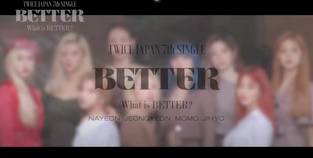Kız grubu 18 Kasım’da yedinci Japonca single’ları ‘Better’ı yayınlayacak. Kız grubu Nayeon, Jeongyeon,Momo ve Jihyo’nun dört üye olarak yedinci Japonca single’larının tanıtıldığı bir önizleme videosu yayınladı.