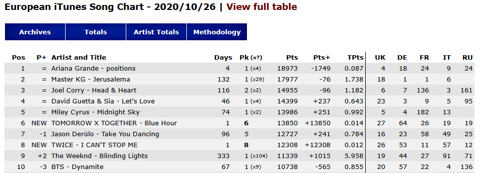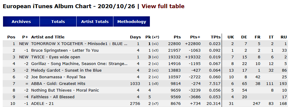 TXT‘nin 3. mini albümü “minisode1: Blue Hour”, 26 Ekim’de yayımlandı. Albüm; Türkiye, Meksika, Brezilya, Rusya, Hindistan, Filipinler, Vietnam, Tayland, Peru, Endonezya ve Şili dahil 31 ülkenin iTunes En İyi Albümler listesinde zirveye yükseldi.