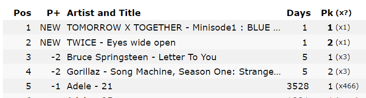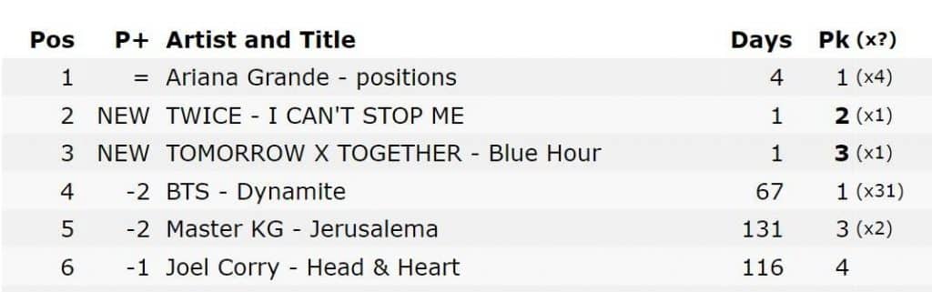 TXT, 4. nesil erkek grupları arasında en iyi sıralamayı elde etmiş durumda.