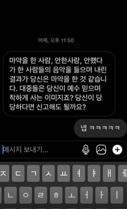 Fotoğrafta, netizen rapçiye uyuşturucu kullandığını düşündüğü ile ilgili bir mesaj gönderdi.