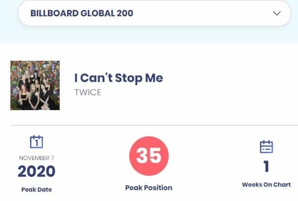 “I Can’t Stop Me” Billboard Global 200 Listesinde 35. sıradan giriş yaparak TWICE’ın üst sıradan giriş yapan ilk şarkısı oluyor.