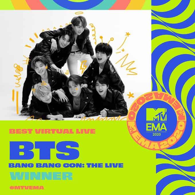 Congrats to @BTS_twt on winning #MTVEMA Best Virtual Live! ? pic.twitter.com/VTUNyKv9V6