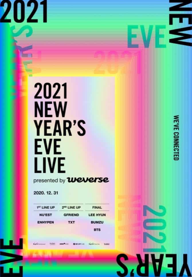 10 Kasım’da Big Hit Labels, Weverse aracılığıyla, “Weverse tarafından sunulan 2021 NEW YEAR’S EVE LIVE” yazdığı, hem çevrim içi hem de çevrim dışı olacak bir konserin 31 Aralık 2020′de perşembe günü saat 15.30’da (TSİ) gerçekleşeceğini duyurdu. Şimdiye kadar açıklanan isimler NU’EST, ENHYPEN, GFRIEND ve TXT!