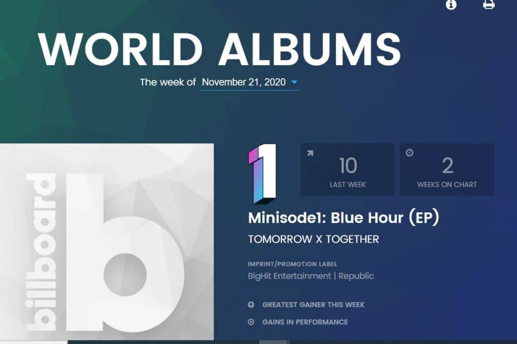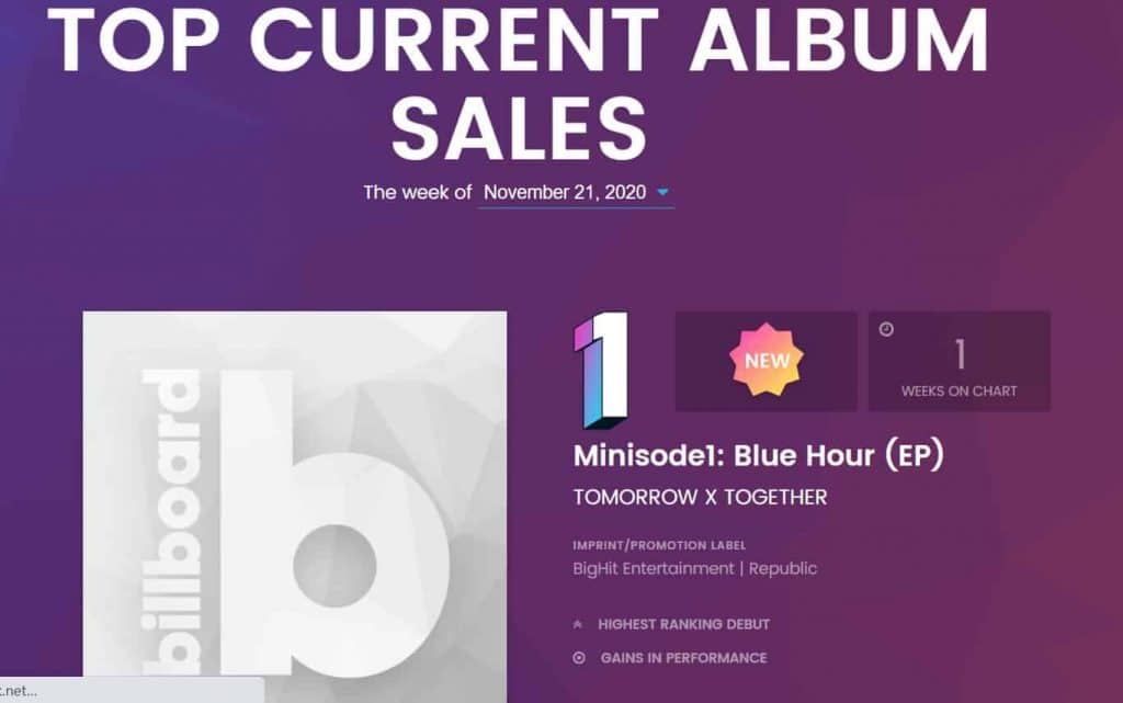 Bu hafta; 3. mini albümleri “minisode1 : Blue Hour” ile Billboard 200 listesine 25 numaradan giriş yaparak, 4. nesil K-Pop grupları arasında rekor kıran TXT, aynı anda 4 Billboard listesinde de zirvenin sahibi oldu!