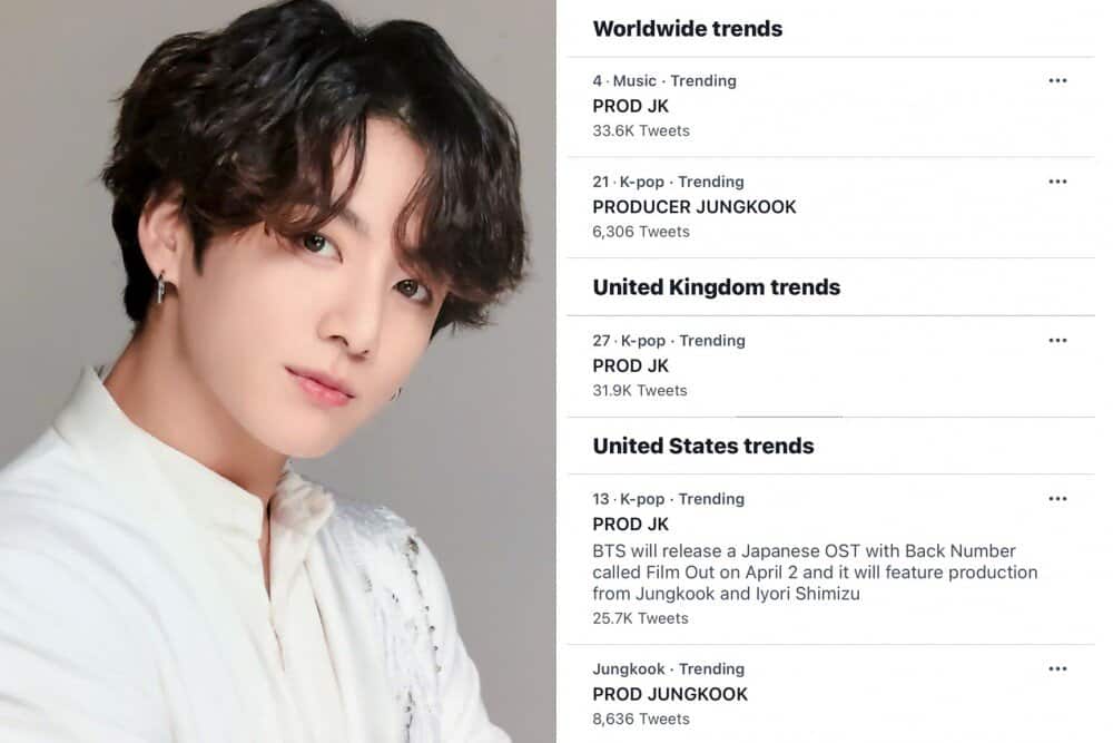BTS‘in Jungkook‘u 15 Şubat’ta Twitter’da dünya çapında trend oldu ve pek çok hayran, BTS‘in 2 Nisan’da ”Film Out” adlı bir Japon OST yayınlayacağı haberini paylaştı. Jungkook ve Lyori Shimizu‘nun prodüksiyonu olacak.