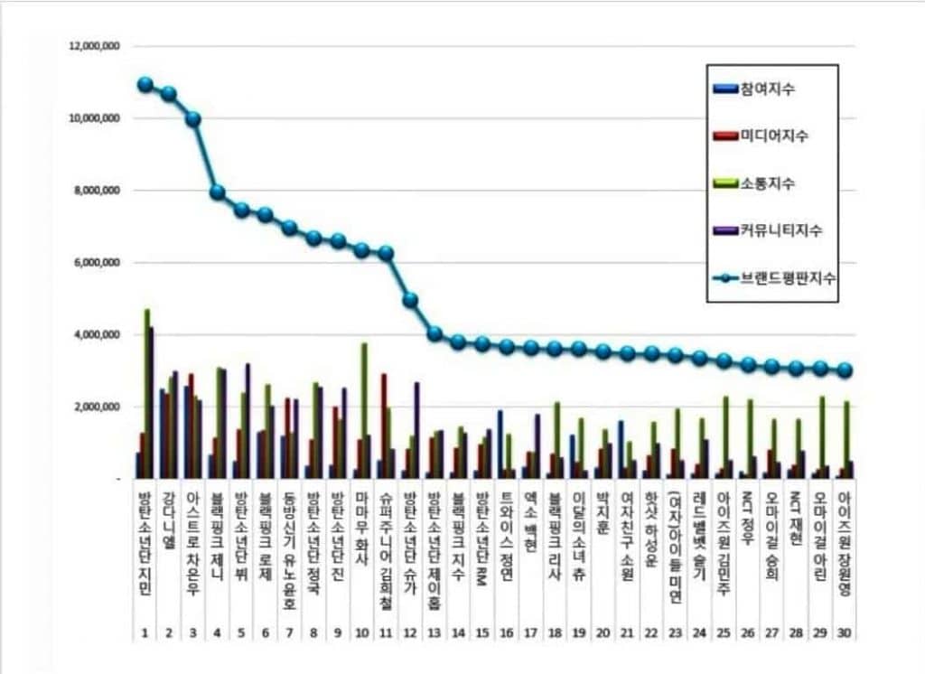 Sıralamalar; 21 Ocak – 21 Şubat tarihleri arasında toplanan büyük veriler kullanılarak, 1.453 idolün tüketici katılımı, medya kapsamı, etkileşim ve topluluk farkındalık indekslerinin analizi ile belirlendi.