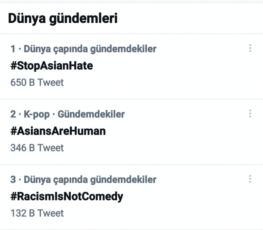 ABD’nin Georgia eyaletinde Asyalılar’a ait 3 masaj salonuna düzenlenen silahlı saldırılarda, 6’sı Asya kökenli kadınlar olmak üzere 8 kişinin hayatını kaybetmesi üzerine bugün birçok Koreli sanatçı da, #StopAsianHate tagiyle paylaşımlar yaptı.