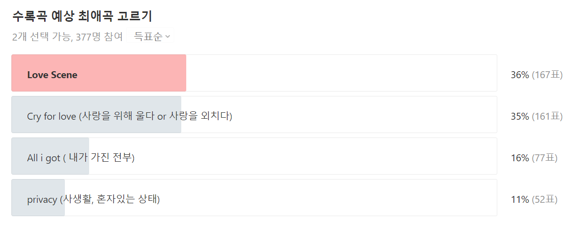 – ‘Love Scene’e karşı hislerim var. Benim favorim olacak.