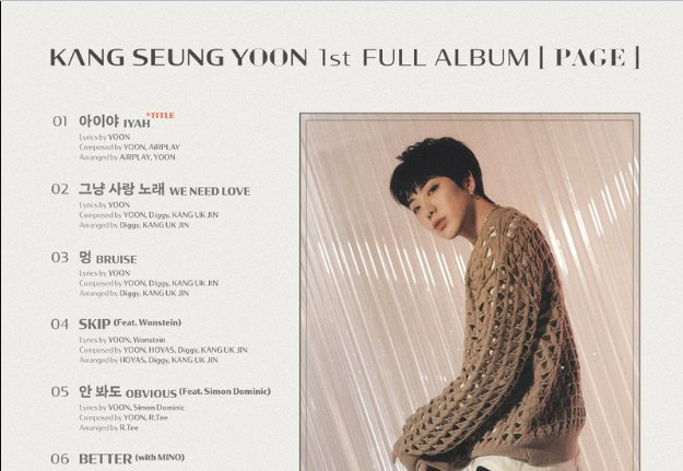 KANG SEUNG YOON 1st FULL ALBUM [PAGE] TRACKLIST POSTER