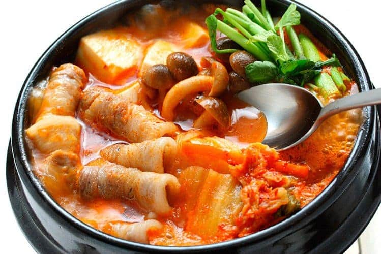 Ana ürünü kimchi olan bu yemekte genellikle tofu, domuz eti veya deniz mahsülü ürünler kullanılır