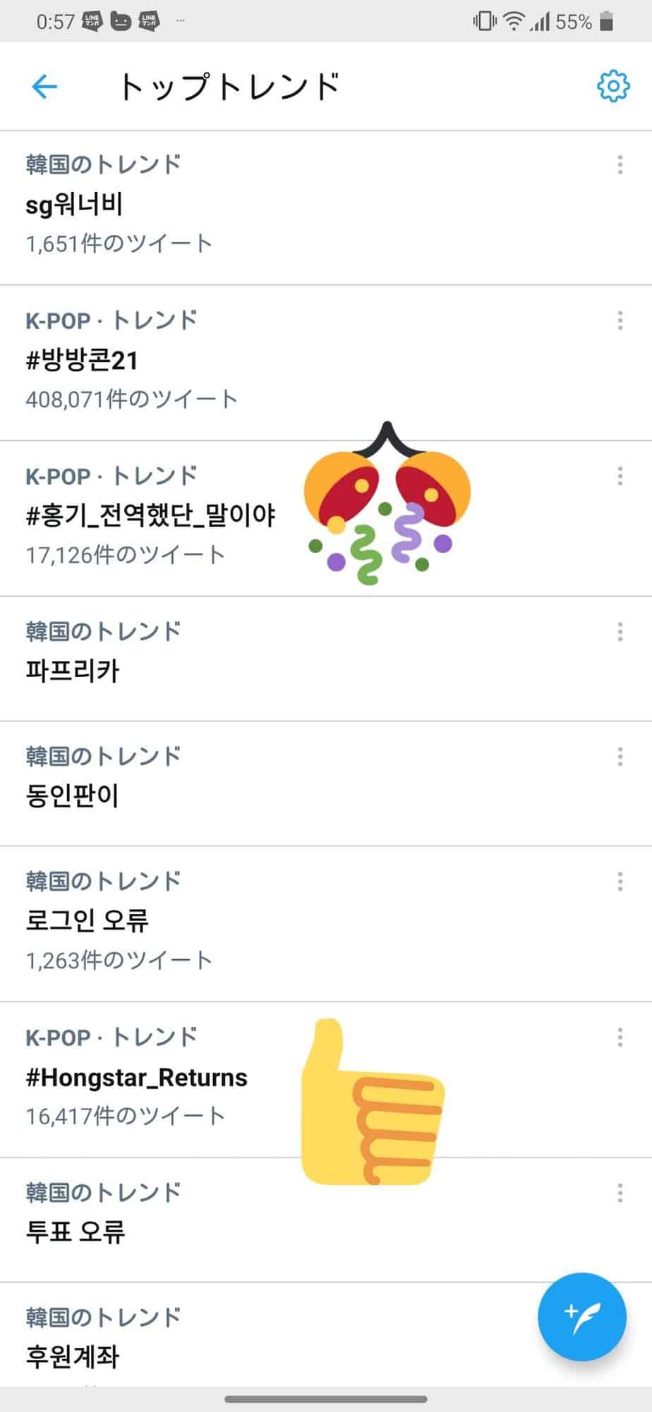 FTISLAND’Dan Lee Hong Ki’nin 18 Nisan’da askerliğini resmi olarak tamamlamasıyla birlikte hayranlar Güney Kore saatine göre 17 Nisan saat 23.00’da başlamak üzere 17 Nisan’ı 18 Nisan’a bağlayan gece “홍기_전역했단_말이야” ve “Hongstar_Returns” hashtagleri ile Twitter’da bir hashtag etkinliği yaparak Lee Hong Ki’nin terhis oluşunu kutladılar ve Güney Kore Twitter trendlerine girdiler.