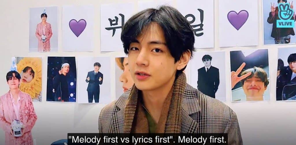 Canlı bir yayın sırasında, V, genellikle melodiyi sözlerini yazmadan önce yazdığını söyledi.